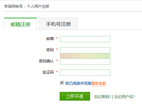 4.进去之后,可以看到信息填写界面,按照要求填写自己的邮箱,密码,点击“立即开通”;