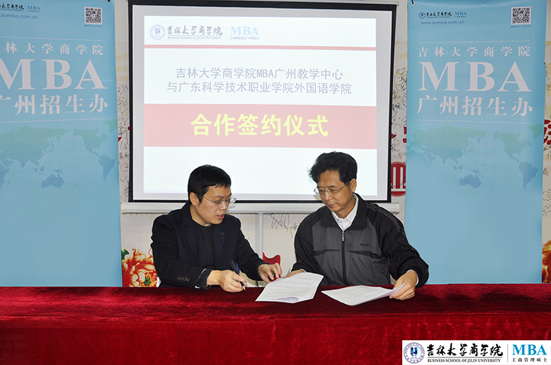 11月13日下午,吉林大学商学院MBA广州教学中心负责人肖雄松会见广东科学技术职业学院外国语学院院长杨志忠并出席签约仪式根据双方签署的协议,计划在珠海开设吉大MBA代招办,今后将吸引更多珠海及周边的考生报读吉林大学商学院MBA。